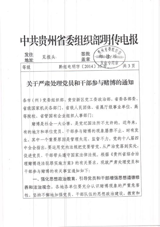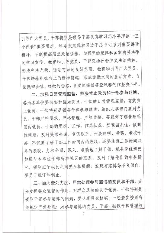关于严肃处理党员和干部参与赌博的通知